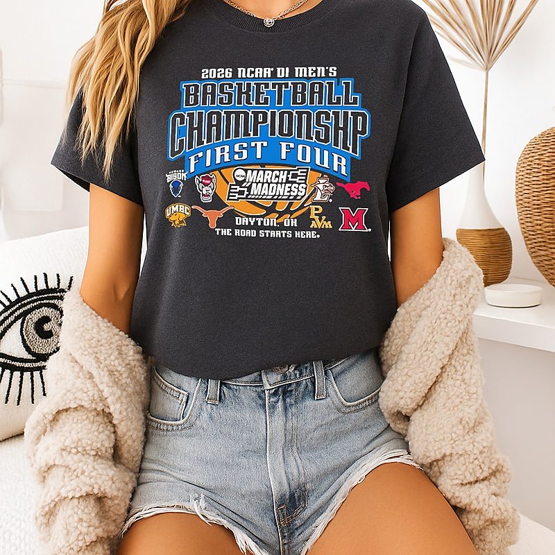 2026 NCAA Division I Men’s Basketball Championship March Madness First Four The Road Starts Here T-Shirt is trending online now. Check out the t-shirt below!