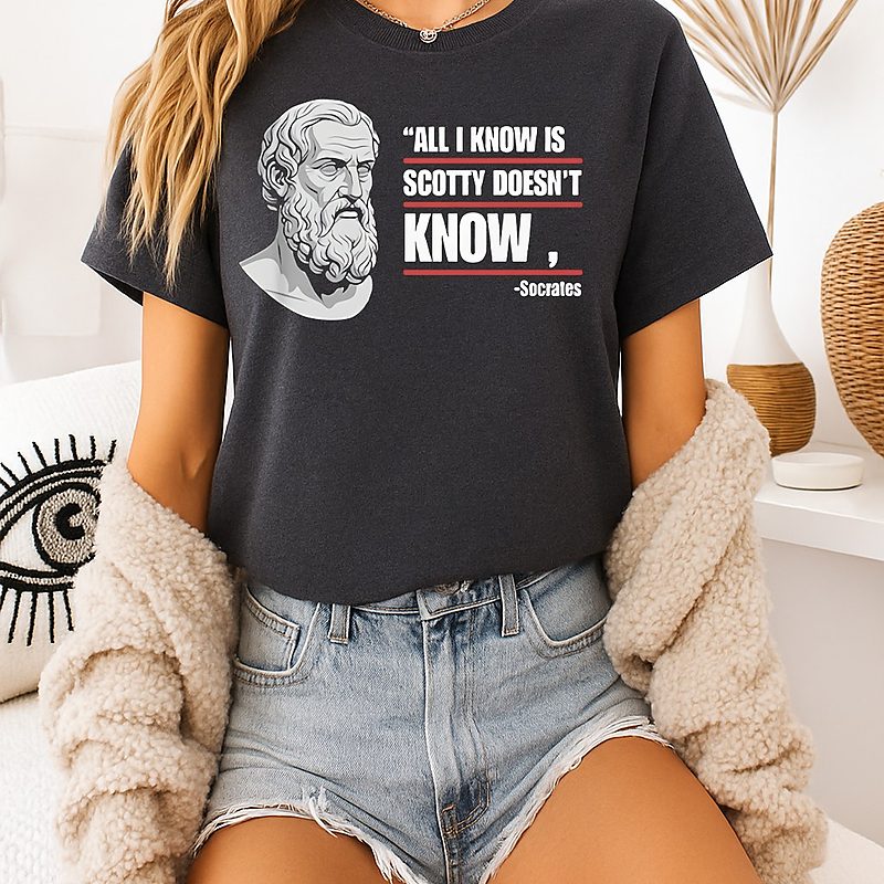Be the first to review “All I Know Is Scotty Doesn’t Know Funny Socrates Parody T-Shirt” Cancel reply