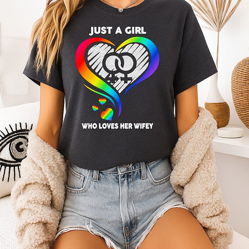 Awesome Heart Lgbt Just A Who Loves Her Wifey T-Shirt