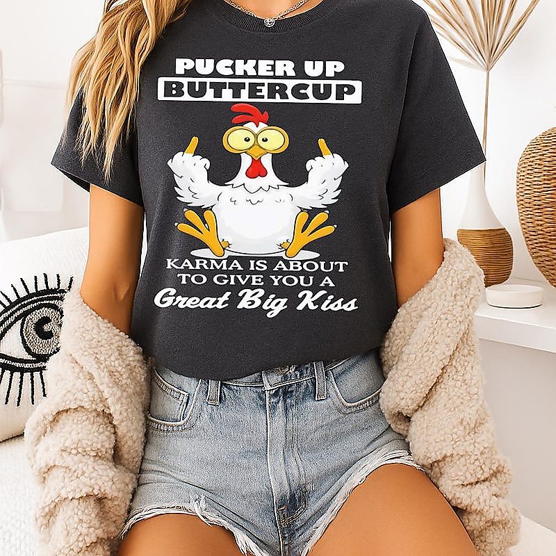 Chicken Pucker Up Buttercup Karma Is About To Give You A Great Big Kiss T-Shirt