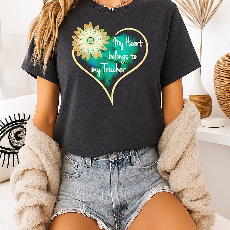 Be the first to review “Flower My Heart Belongs To My Trucker T-Shirt” Cancel reply