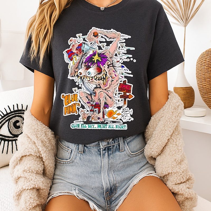 Be the first to review “Glue Fink Glue All Day Paint All Night Zombie Goat Cartoon T-Shirt” Cancel reply