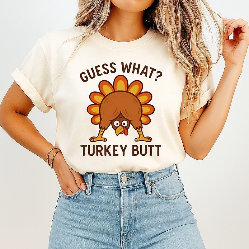Be the first to review “Guess What Turkey Butt Thanksgiving Funny T-Shirt” Cancel reply