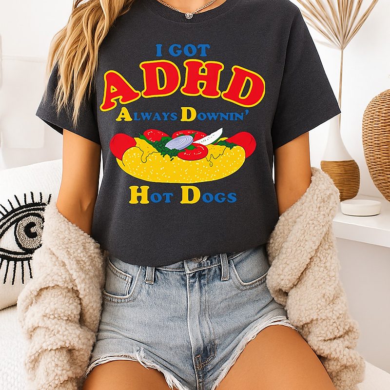 Be the first to review “I Got Adhd Always Downin Hot Dogs T-Shirt” Cancel reply