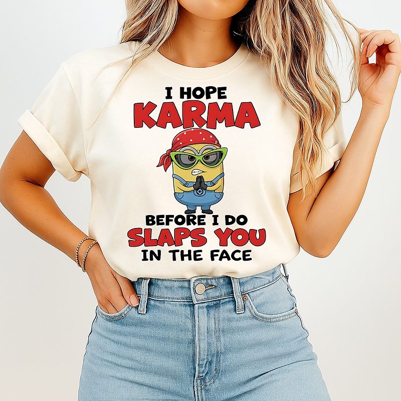 Be the first to review “Minion I Hope Karma Before I Do Slaps You In The Face T-Shirt” Cancel reply
