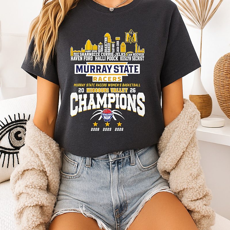 Be the first to review “Murray State Racers Missouri Valley Champions 2026 Player Name City Skyline T-Shirt” Cancel reply