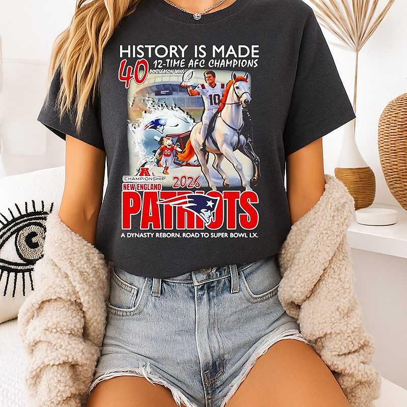 Be the first to review “New England Patriots History Is Made 40 Postseason Wins 12 Time Afc Champions 2026 T-Shirt” Cancel reply