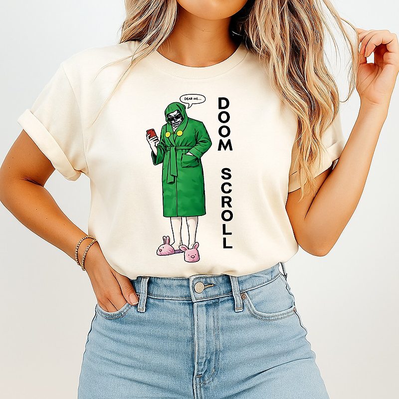Be the first to review “Robert Downey Jr Wearing Doom Scroll T-Shirt” Cancel reply