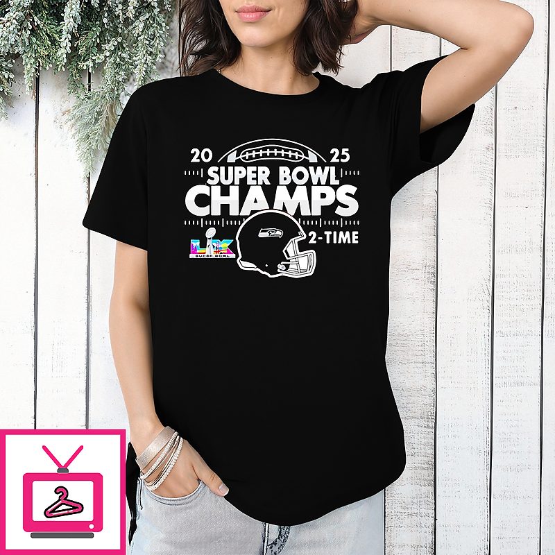 Seattle Seahawks 2025 Super Bowl Champions 2 Time Helmet T-Shirt