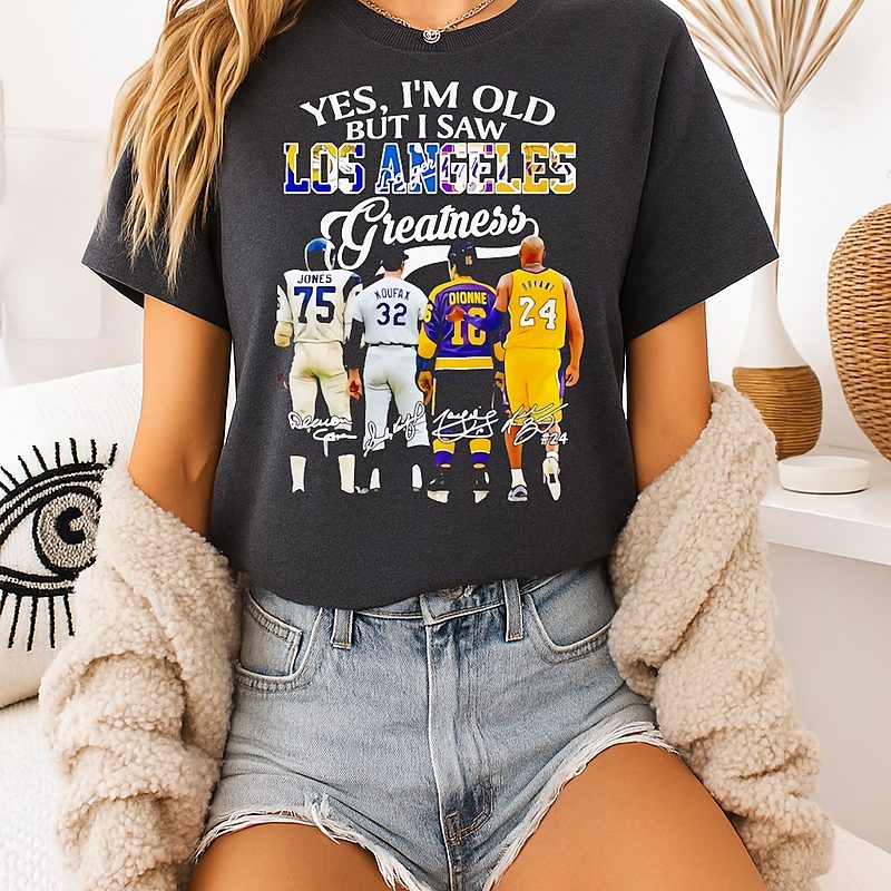 Yes I’m Old But I Saw Los Angeles Greatness La Rams La Dodgers La Kings And La Lakers Signatures T-Shirt is trending online now. Check out the t-shirt below!